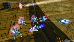 遠距離ではブラスト、中距離ではフォース、近距離ではソードと、戦況に応じて換装していくことが重要だ。バーストアタックではデスティニーガンダムが援護に駆けつけ、敵機に突撃を仕掛ける。うまく連携して敵機を撃破しよう。