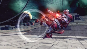 ▲チャージ格闘武装では、アインラッドの上に乗り「浮遊モード」に移行する。浮遊モード中はステップが専用のものになるほか、後格闘で降下することができるようになる。