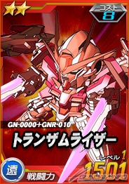 ※「★2 トランザムライザー」と同一ユニットを強化合成に使用し、強化パーツのLvを上げると「リボンズ搭乗リボーンズガンダム」への攻撃力倍率が「100%」上昇します。