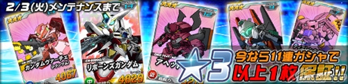 さらに、エースユニットガシャに「★4 リボーンズガンダム」をはじめとした超強力ユニットが多数登場するほか、「強力カードGET!★3以上ユニット保証キャンペーン」など3つのキャンペーンとイベントもあわせてスタートした。