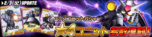 エースユニットガシャに、「★4 ガンダム」、「★4 G-3ガンダム」、「★4 ジオング」、「★3 FAアレックス(チョバム・アーマー装備仕様)」など、強力なユニットが登場した。