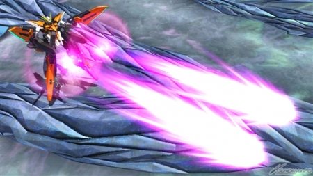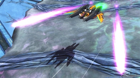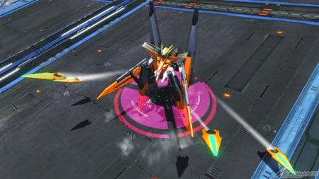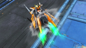 ▲特殊格闘武装「GNバーニアユニット」では、自機正面に急速移動を行う。
