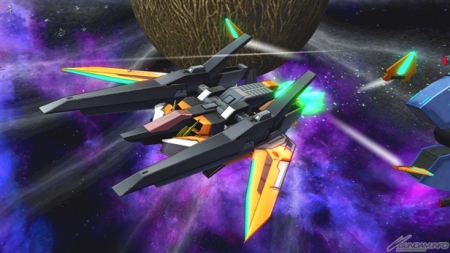 本作では、全身に搭載した火器を用いた射撃戦と、変形機構やGNバーニアユニットの出力を活かした機動力が持ち味の3000コストの射撃寄り万能機体として登場。MS形態は、出力を任意に切り替え可能で2種類の弾丸を発射することができるメイン射撃「GNソードライフル」と、チャージ格闘で出せる「GNシザービット」と組み合わせて敵を翻弄することに長けた、扱いやすい形態だ。