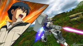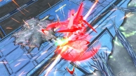 ▲特殊格闘武装「GNバーニアユニット」では、相手に向かって急速接近を仕掛ける。レバー入力によって軌道が異なり、レバーNまたはレバー前いれでは相手に向かって直進し、レバー横いれでは斜め方向に、レバー後いれでは自機後方にそれぞれ移動する。