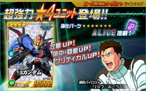 The Ace Unit Gasha adds the four-star S Gundam, along with returning the four-star Nu Gundam and others to rotation, and an event reducing fusion materials cost has also begun.