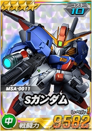The Ace Unit Gasha adds the four-star S Gundam, preequipped with "ALICE", alongsize the return of the Nu Gundam, Sazabi, and Sinanju. Any of these units would make a great addition to your deck!