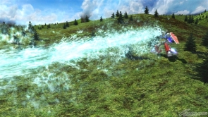 Sub-ranged: "Shoulder Rocket Cannon [Water] / [Kinetic] A ranged attack from the shoulder-mounter rocket cannon. Its effects differ depending on stick position.