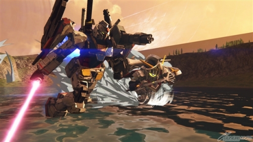 通常の射撃・近接攻撃だけでなく、「レーザーポッド」による全方位攻撃や、敵機を硬直状態にする「フォトン・シールド」など、豊富な兵装を兼ね備えたバランスの良いMS。