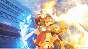 胸に輝く「炎水の玉」が特徴的な爆熱の武者。奥義「熱火爆輪斬」を放つ際には、「スーパーモード 爆熱の陣」形態になる。