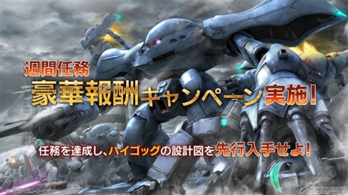 期間中に出撃すると、条件に応じてキャンペーンポイント「CP」がカウントされ、一定数を達成するたびに特別な報酬がプレゼントされる。また、今回は「ハイゴッグ」の設計図を先行して入手することができる。