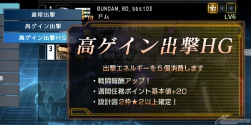 出撃エネルギーを1度に5個消費する「高ゲイン出撃HG」も実施!