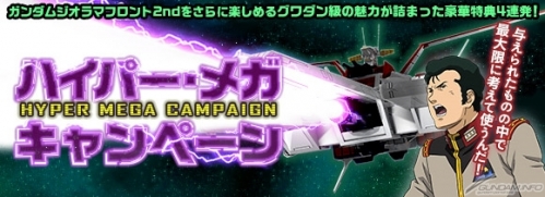 すでに「ガンダムジオラマフロント」を遊んだことがある人に向けて、「2ndアップデート」実施を記念した、過去最大級の圧倒的キャンペーン「ハイパー・メガ・キャンペーン」が開催中だ。
