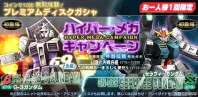 キャンペーンは全部で4つあり、第1弾は「プレミアムディスクガシャ10連」1人1回限り無料、第2弾は3日ごとにDXガシャチケットがもらえる「ログインボーナス-INNOVATOR-」、第3弾は1ヶ月以上本作をプレイしていない人への資源・資金100万と各種チャージャー100個の支給、第4弾は「新機能突貫作戦」期間中に3モードプレイで「プラチナ要請書」10枚プレゼント、となっている。