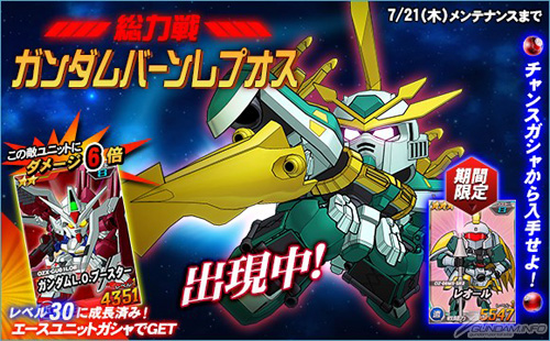総力戦に「バーンレプオス」が登場。さらに、エースユニットガシャに「★3 ヴァイエイト・シュイヴァン」、プラチナパイロットガシャに「★3 ソリス・アルモニア」などが登場しているほか、「ユニット合成経験値アップ期間」もスタート。