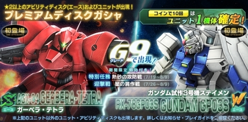 さらに、上記の特別任務に役立つ特効を持つ新ユニット「ガンダム試作3号機ステイメン」と「ガーベラ・テトラ」がガシャに初登場する。ユニットを手に入れて、強敵に立ち向かおう。