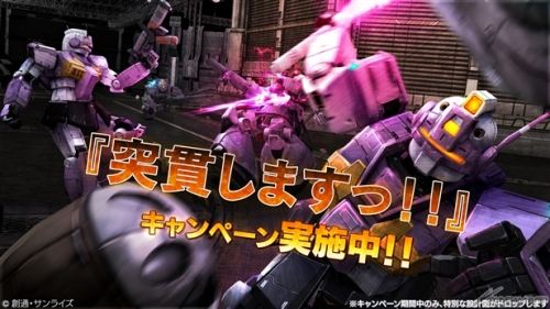 「ジム・インターセプトカスタム」の設計図がドロップする「『突貫しますっ!!』キャンペーン」開催。アップデートで、マップの入れ替え、シチュエーションバトルの変更、既存MSの上位レベル「陸戦強襲型ガンタンク LV7」、「ゴッグ LV7」追加。「出撃エネルギー:備蓄(60回)」期間限定販売。