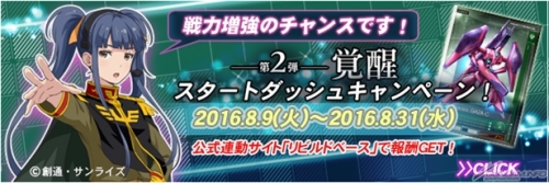 キャンペーンでは、期間中に「リビルドベース」にアクセスするだけで「500EXバトルpt」とデジタルカード「ガザC」が未取得者に限りプレゼントされる。前回のキャンペーンで「ガザC」を入手し損ねてしまった人も、第2弾から初めて本作をはじめる人も、見逃せない特典となっている。
