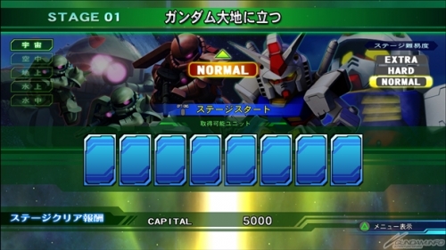 『機動戦士ガンダム』のステージを選択した場合、ゲームは以下のような流れで進行する。様々な作品を通して、宇宙世紀100年の歴史を体験しよう。