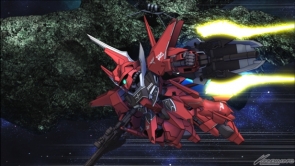 高い機動性と稼働時間を確保しつつも、特殊部材「サイコフレーム」を組み込み、武装面でも収束と拡散ビームを撃ち分ける事が可能な「大型メガ・ビーム・ライフル」や「ファンネル」を5基ずつ搭載するなど、あらゆるジオン系MSの集大成となるニュータイプ専用試作型MSであり、新生ネオ・ジオン軍の象徴ともいうべき機体である。