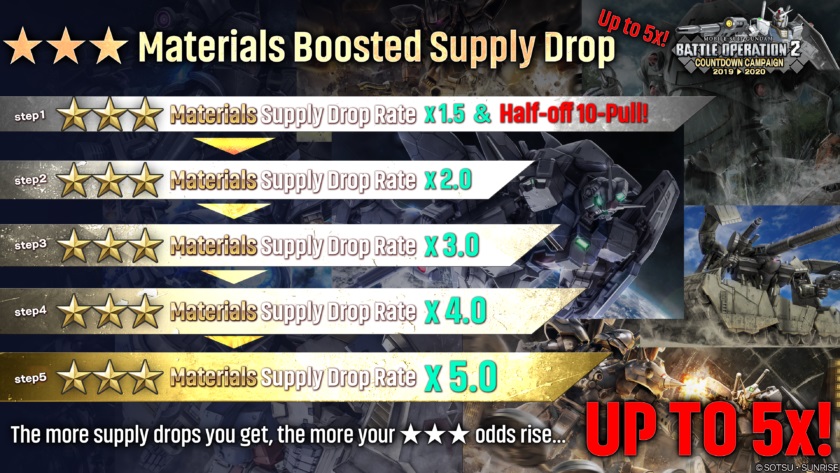 Weekly Free 10-times roll of Supply Drop for December, which includes all the MS and weapons obtainable from the supply drop up to this point! (10-times draw x 4 weeks = up to 40-times draw!!)