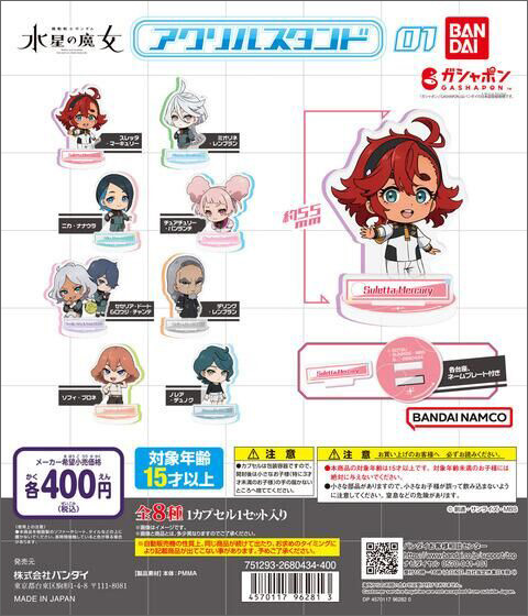 Gli articoli Gashapon Mobile Suit Gundam la strega di mercurio acrilico stand 01 andrà in vendita a Gashapon macchine intorno Giappone a partire dalla 5a settimana di febbraio.Ogni uno costa 400 JPY (IVA incl.).