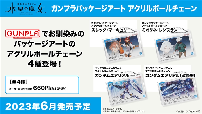 Le catene a sfere acriliche utilizzeranno il pacchetto artistico dello standard suletta Mercury e Miorine Rembran GUNPLAs, così come l'antenna HG Gundam e la ricostruzione aerea HG Gundam.