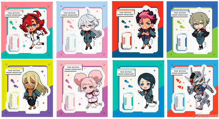 Pre-ordini per otto tipi di stand acrilico tokotoko: Mobile Suit Gundam la strega di mercurio è diventata disponibile oggi, giovedì 6 aprile, presso i negozi di Hobby in Giappone e siti Web di shopping online.Essi saranno spediti a fine settembre e costano 770 (IVA incl.) ciascuno.