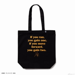 Parole e righe accattivanti dalGUNDAMserie sono stati utilizzati per realizzare queste eleganti borse tote.