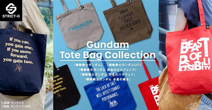 La collezione di borse tote tipografiche STRICT-G, realizzata utilizzando parole e linee della serie Gundam, sarà in vendita a partire dall'11 novembre!
