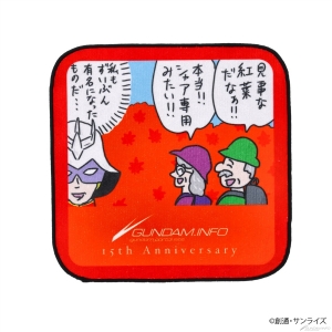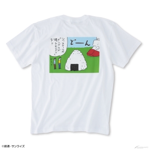 Le magliette e gli asciugamani presenteranno disegni basati su illustrazioni disegnate da Ohoshintaro - un comico, illustratore e mangaka - per il progetto seriale "15 Years of Gundam and GUNDAM.INFO" che guarda indietro ai 15 anni da quando GUNDAM.INFO iniziato.