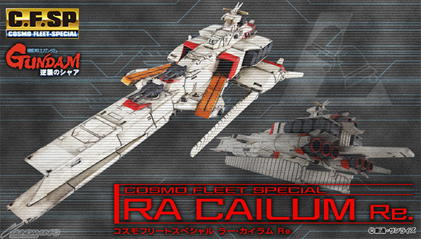 Il primo oggetto che celebra il ritorno è una versione rinnovata del Ra Cailum, capitanato da Bright Noa diMobile Suit Gundam: Char's Counter Attack.La nave lunga circa 17 cm è preverniciata e rifinita.. Come caratteristica della versione rinnovata, è stato dato un lavoro di verniciatura leggermente alteratoversione ewed, è stato dato un lavoro di verniciatura leggermente alterato. Inoltre, la decalcomania dell'acqua