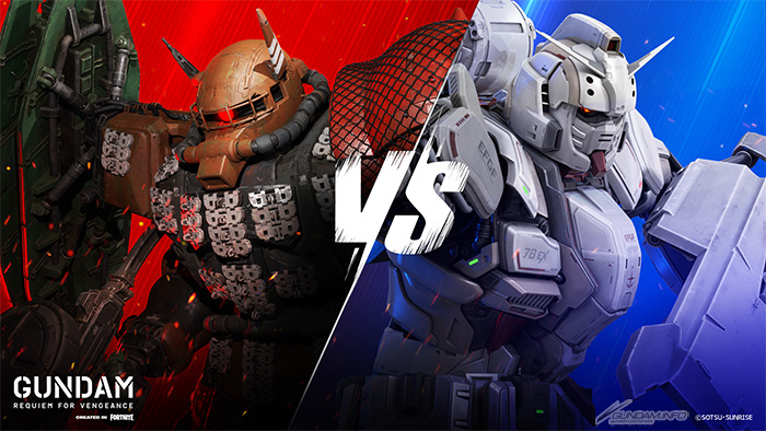 I giocatori sperimenteranno unRequiem per la vendetta-gioco deathmatch a squadre a tema nel mondo di Fortnite. Saranno divisi in soldati Zeon e della Federazione e competeranno per le uccisioni mentre raccolgono punti, che possono essere utilizzati per attivare i Mobile Suit. Appariranno anche i Zaku II (Unidentified Type) Solari e Gundam EX e i giocatori potranno usare le loro abilità mentre si godono il mondo della nuova serie.