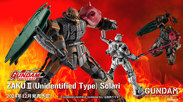 Dopo l'uscita di GUNDAM UNIVERSE GUNDAM EX prevista per novembre, i dettagli iconici della ZAKU II (Unidentified Type) sono stati riprodotti fedelmente. Può essere visualizzato in pose viste in tutta la serie e viene fornito con armi come un Hawk termico, Zaku mitragliatrice e Shield che possono essere utilizzati per ricreare le scene.