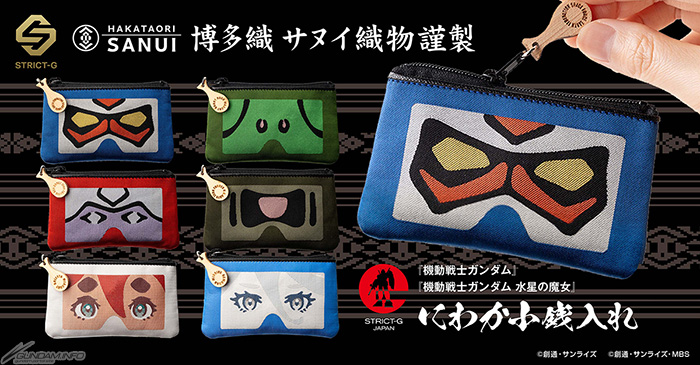 I preordini per sei tipi di portamonete Niwaka realizzati in collaborazione tra Sanui Orimono, una società di Hakata-ori, e STRICT-G, un negozio di abbigliamento che incorpora la visione del mondo di Gundam, iniziano alle 13:00 (JST) di venerdì 23 agosto, attraverso il negozio online STRICT-G su Premium Bandai. Saranno 2.970 JPY (tasse incluse) ciascuno.