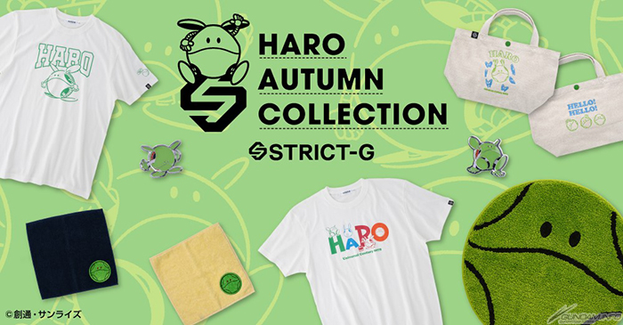 La collezione include spille, una borsa per il pranzo, fazzoletti semplici, un tappetino e magliette, tutti progettati con ilMobile Suit Gundammascotte, Haro.