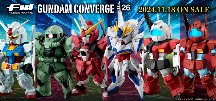 L'ultima serie FW GUNDAM CONVERGE ♯26 di Gundam Shokugan sarà in vendita lunedì 18 novembre 2024. Ce ne sono di sei tipi e costeranno 693 JPY (tasse incluse) ciascuno.