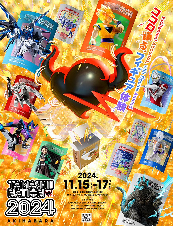 TAMASHII NATION 2024 si terrà in tre sedi ad Akihabara, Tokyo, da venerdì 15 novembre a domenica 17 novembre. Gli articoli a tema robot, inclusi i prodotti della serie Gundam, saranno esposti all'Akihabara UDX 2F AKIBA SQUARE. L'ingresso è gratuito.