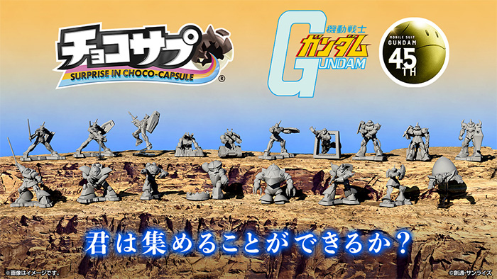 Choco-Capsule Mobile Suit Gundam sarà in vendita a luglio 2025. Ci saranno un totale di 19 tipi, al prezzo di 385 JPY (tasse incluse) ciascuno.
