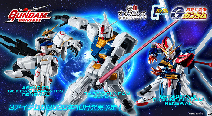 L'RX-78-2 Gundam, il Burning Gundam e il Gundam Barbatos saranno rilasciati dalla serie di action figure GUNDAM UNIVERSE nell'ottobre 2025.