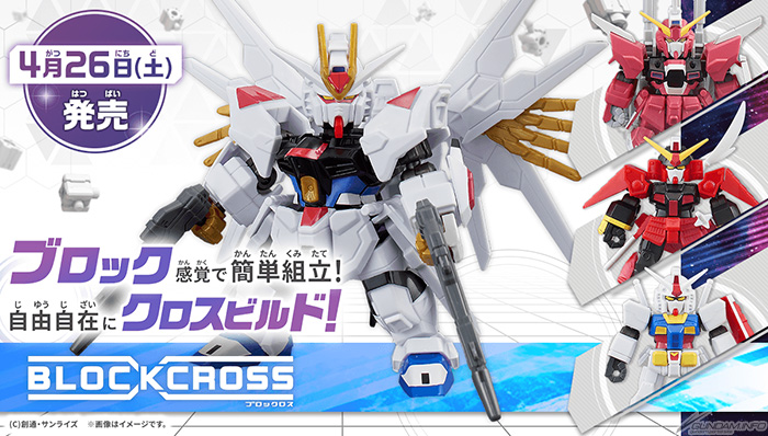 BLOCKCROSS è una nuova serie di figure sviluppata da Bandai, e il primo round con la serie Gundam (quattro tipi di figure) sarà in vendita sabato 26 aprile. Sarà disponibile nei negozi di giocattoli, nei grandi magazzini, nei rivenditori di elettronica, nei negozi online e in altri luoghi in tutto il Giappone. Ogni cifra sarà disponibile per 1.870 yen.