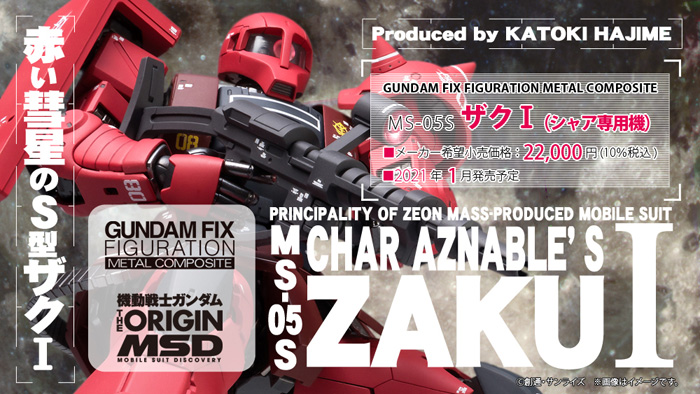 MS-05S Zaku di char mi rilascerò nel gennaio 2021 da GUNDAM METAL COMPOSITE della figurazione (G. F. F. M. C), una serie di modelli completati che utilizzano principalmente materiali pressofusi e ABS.Sarà disponibile per 22.000 JPY (tasse incluse).