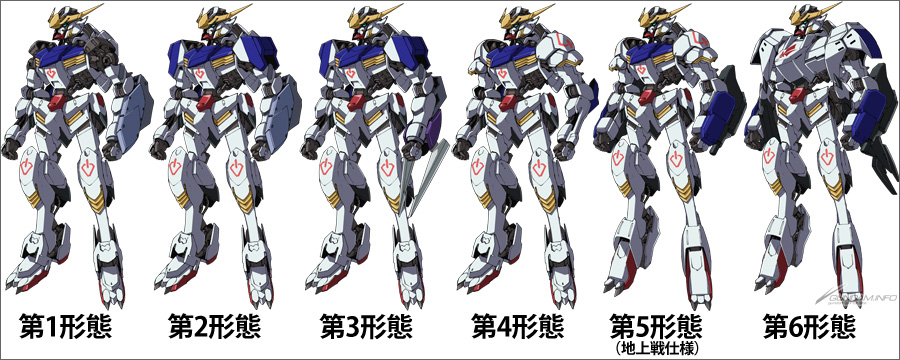 Il Gundam Barbatos è molto versatile, così nella serie, è mostrato lo scambio di tutti i tipi di attrezzature.Utilizza anche le parti nemiche per rafforzarsi e viene migliorata quando necessario.tipo di apparecchiatura. Utilizza anche le parti nemiche per rafforzarsi e viene migliorata quando necessario. Hot utilizza anche le parti nemiche per rafforzarsi e viene migliorata quando necessario. Nella prima stagione, cambia da i