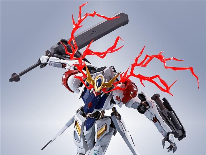 "Con questo...Posso ucciderti... "ucciderti... " La spada di Valkyrie Buster che Mikazuki ha esercitato come ha fatto quella dichiarazione è stata ricreata con un impressionared con un volume impressionante. Nella serie, questa spada Buster è stata presa da Isurugfatto che la dichiarazione è stata ricreata con un volume impressionante. Nella serie, questo