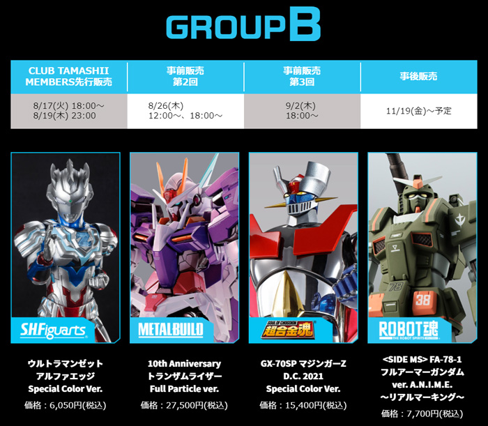 Metodo di vendita: limitato a oceano, fiamma, e Aurora membri dello stage dei membri del CLUB TAMASHII (compresi i membri che si sono classificati entro la domenica 15 agosto)