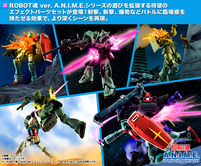 Le parti di effetto di ROBOT spiriti set ver. A.N.I.M.E. dalla serie di robot SPIRITS ver. A.N.I.M.E., che ricrea l'articolazione e disegni che ricordano le impostazioni e le scene della serie, rilascia oggi sabato 28 marzo. Il suo prezzo è 3.850 JPY (10% IVA inclusa).