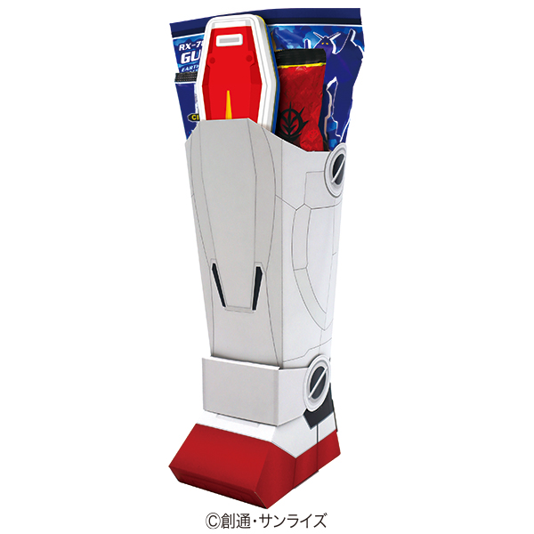 Questo oggetto è un'impattante Calza natalizia fatta di carta a forma di gambe della RX-78-2 Gundam.È pieno di spuntini e comprende un caso di Can a forma di uno scudo che può essere utilizzato per immagazzinare piccoli oggetti.