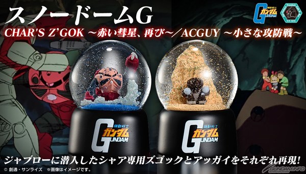 Lo Snow Dome G Char ' s z ' Gok e il Snow Dome G ACGUY andranno in vendita presso la GUNDAM Café Stores nel mese di dicembre per 2.750 yen (tasse incl.).