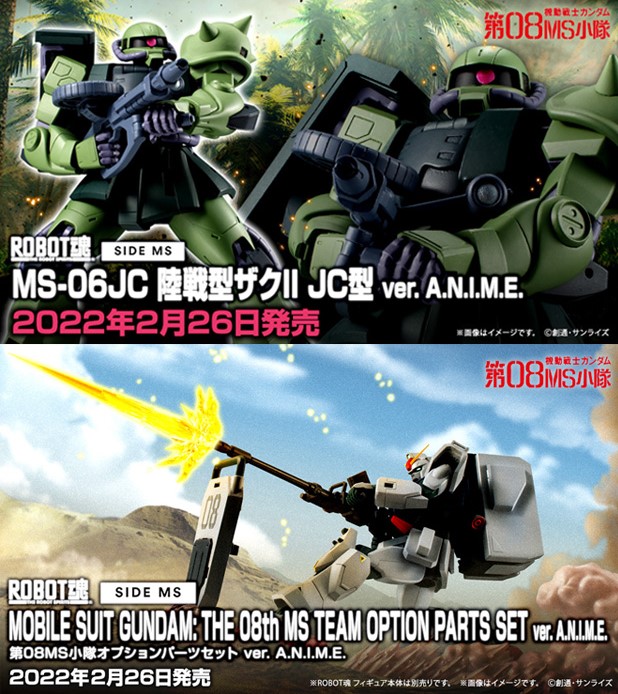 Il tipo di terra Zaku II tipo JC e il 08th MS Team set di parti di opzione dalla ver spiriti ROBOT.A.N.I.M.E. robot Figura serie entrambi andare in vendita oggi sabato, febbraio 26th.
