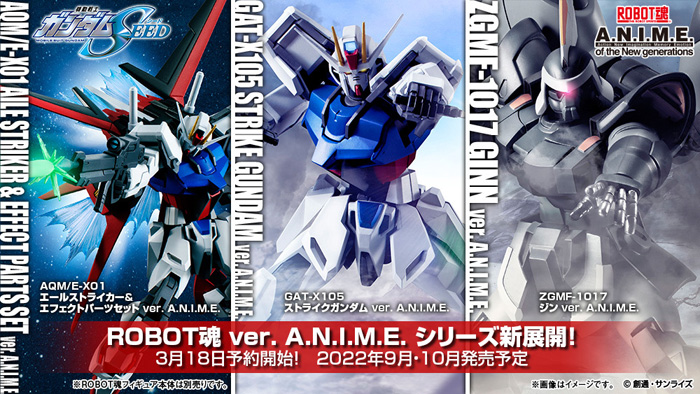 Gli Strike Gundam e aile Striker & Effect set e GINN daMOBILE SUIT GUNDAM SEEDandare in vendita in settembre e ottobre come nuove rate negli spiriti ROBOT ver.A.N.I.M.E. Robot Action figure serie.