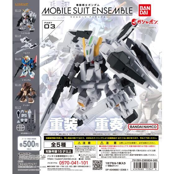 Il terzo capitolo della serie Mobile Suit Ensemble, un marchio che si concentra sul tema delle silhouette che cambiano a causa degli armamenti, ri-comunicati a di machines a livello nazionale a partire dalla quarta settimana di agosto per 500 JPY (incl. tasse) ciascuno.